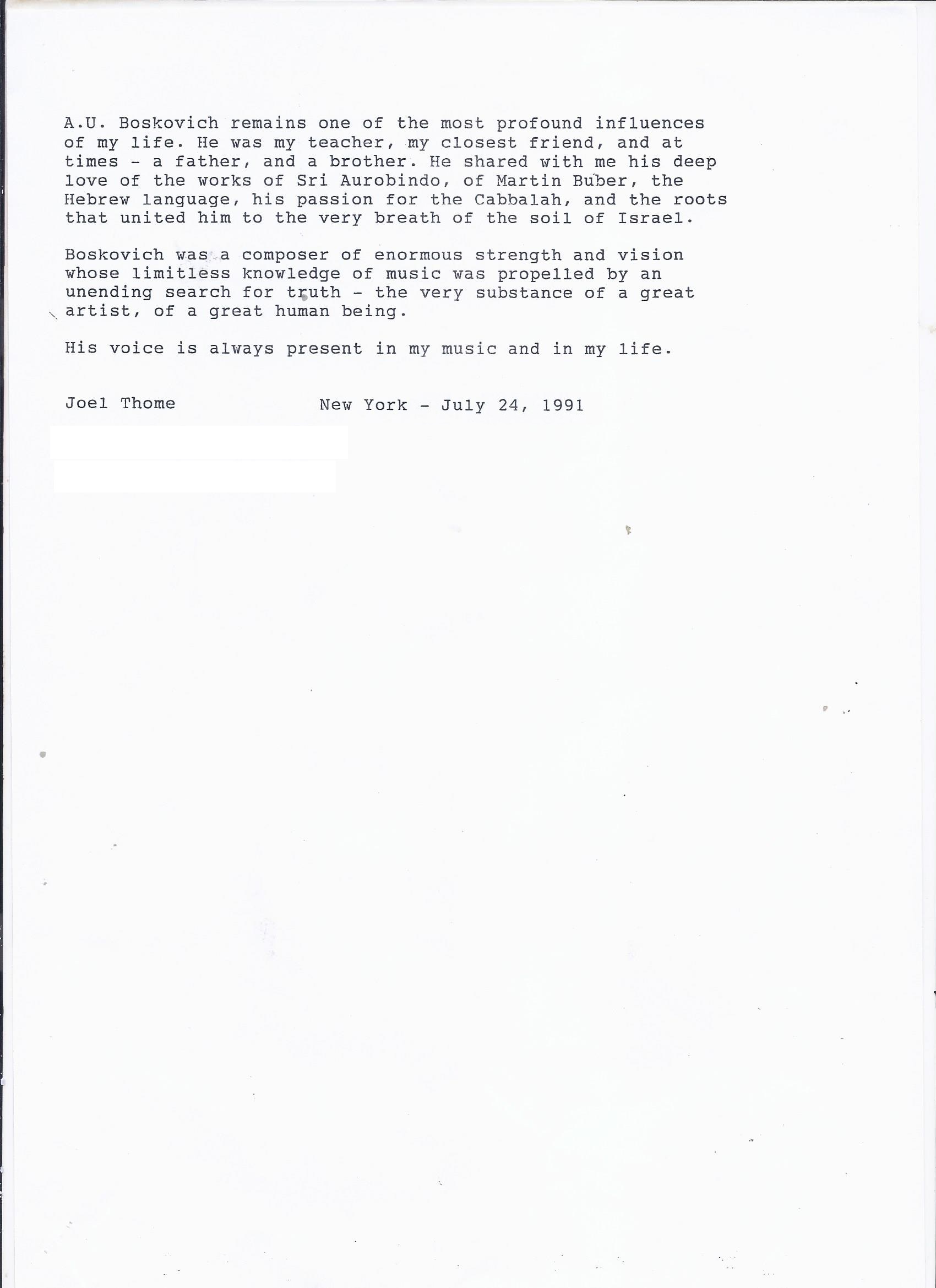 Diane Thom – Deutsch, Remembering A.U. Boskovich – Dedicated Alexader Uryah Boskovich