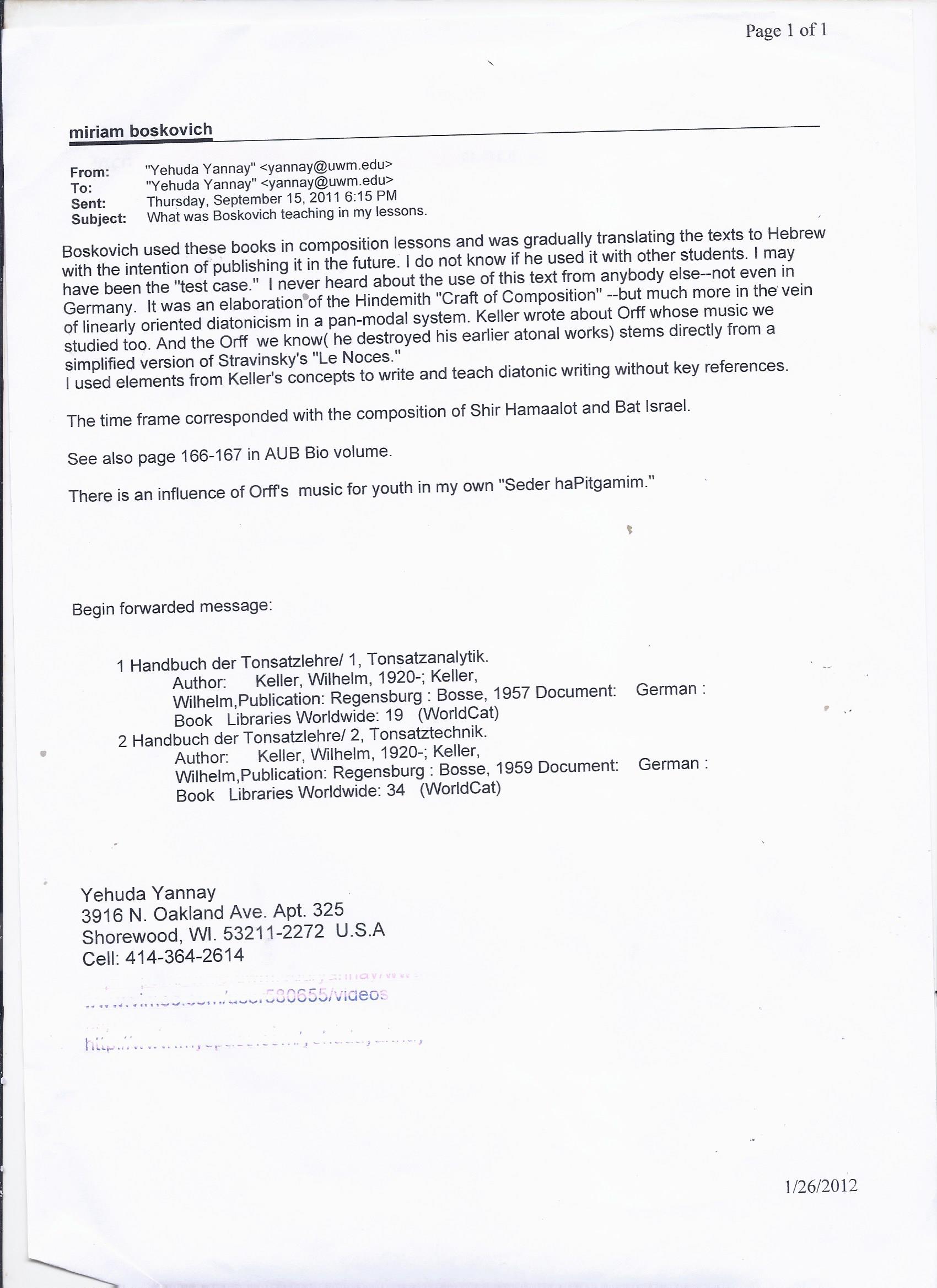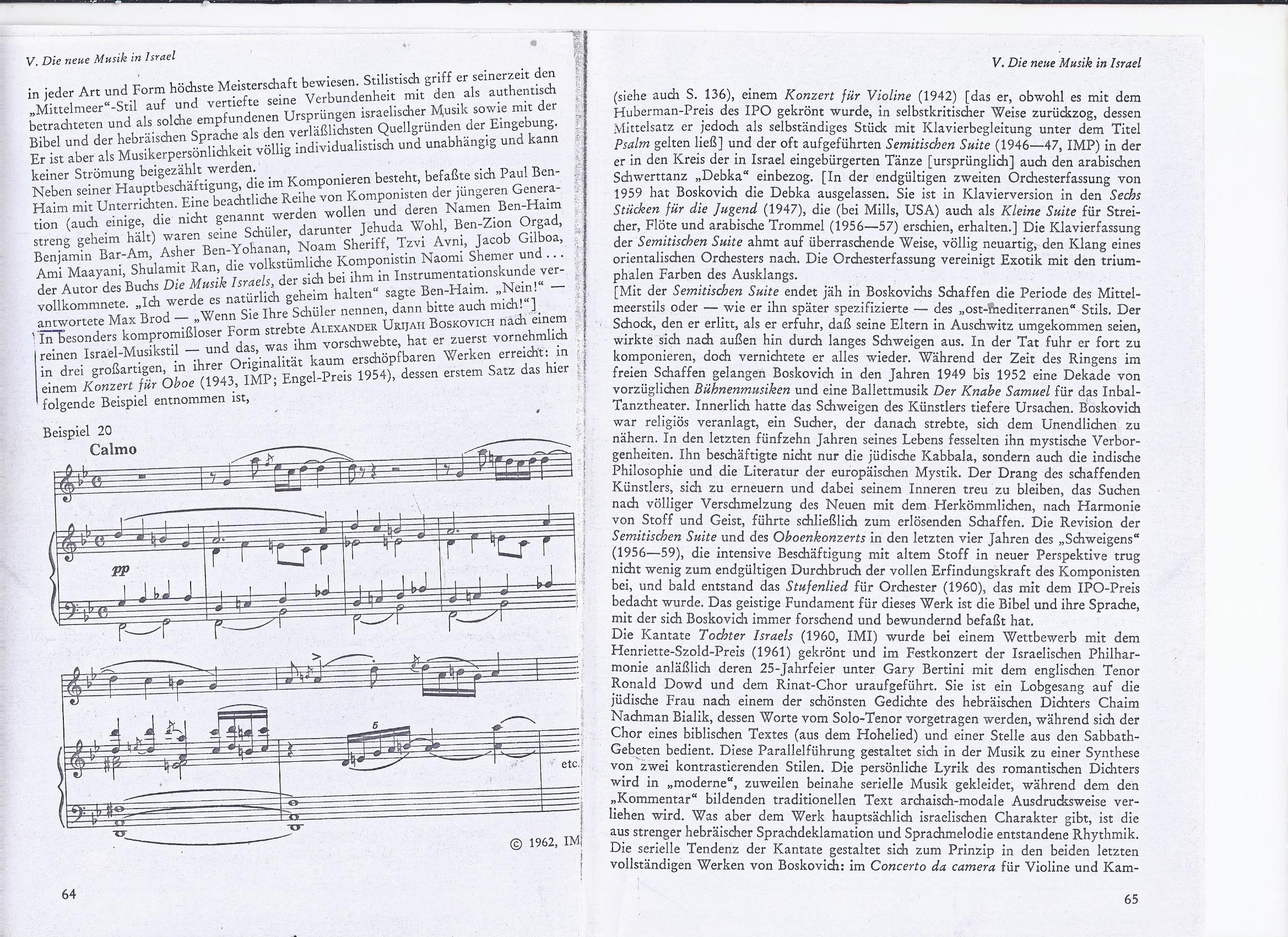 Boskovich, Miriam. “Alexander Uriyah Boskovich – from The Golden Chain to Semitic Suite: 1) Piano Pieces for Youth; 2) Semitic Suite”. A Guide to the Performance of Israeli Piano Works, ed. Miriam Boskovich and Yona Rosenthal- Bogorov (Tel Aviv: The Methodical Centre for Music, 1987), pp. 39-79. (HE)