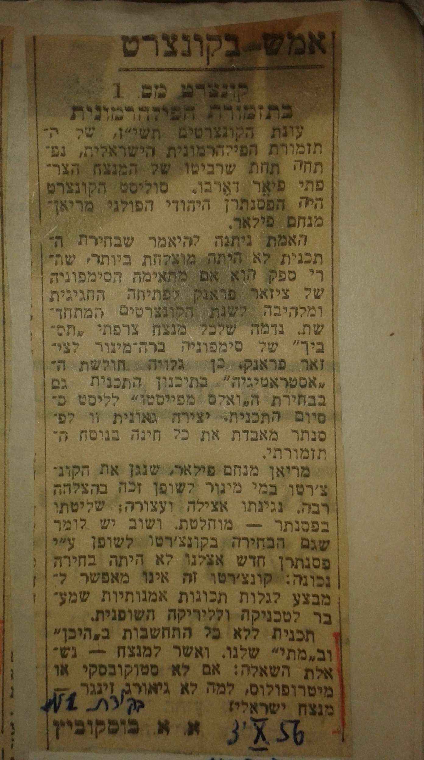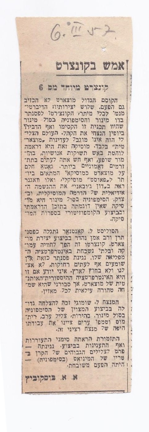 Horst, Leo. “Hobconcert van Boskovich”, Nieuw Israelietisch Weekblad, Amsterdam, 03.02.1959. (NL)