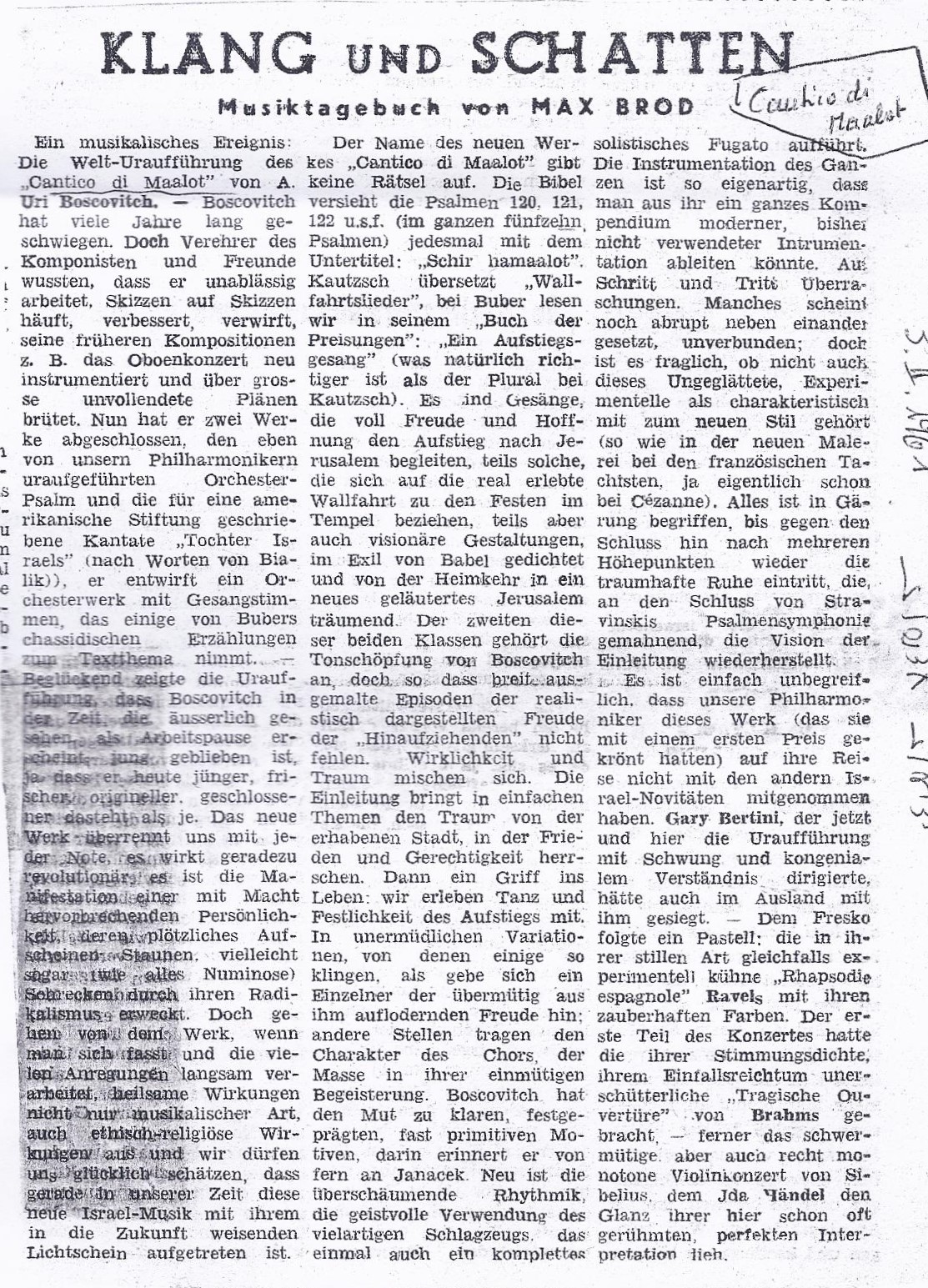 Seelmann-Eggebert, Ulrich. “Alexander Uriyah Boskovich”. Neue Zeitschrift für Musik, 1/1965 (January 1965). (DE)