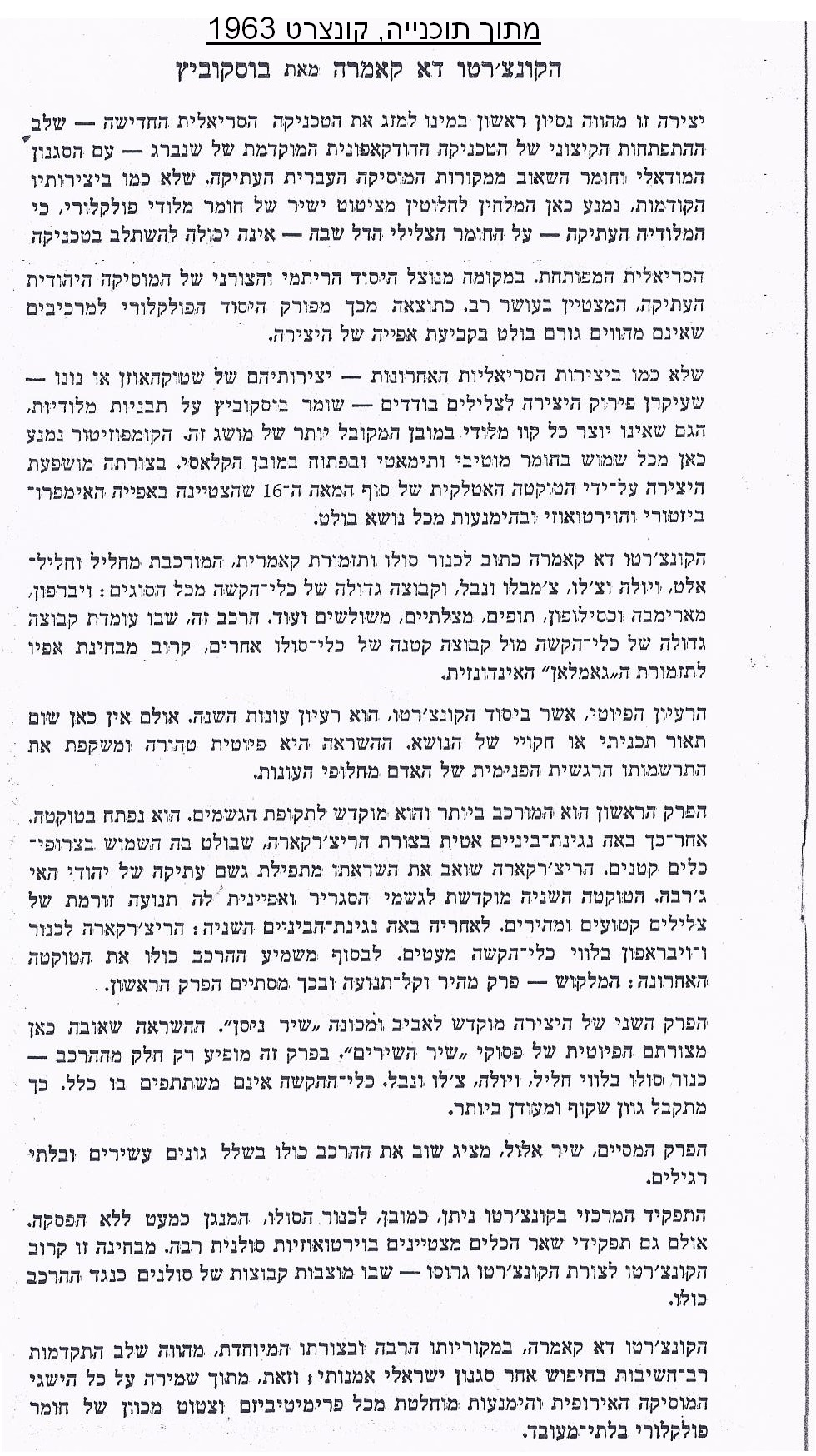 Concerto da Camera 1962/63 קונצ'רטו דה קמרה