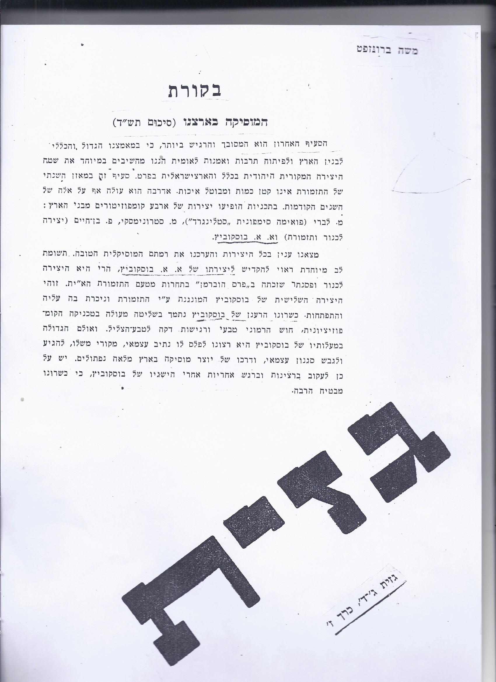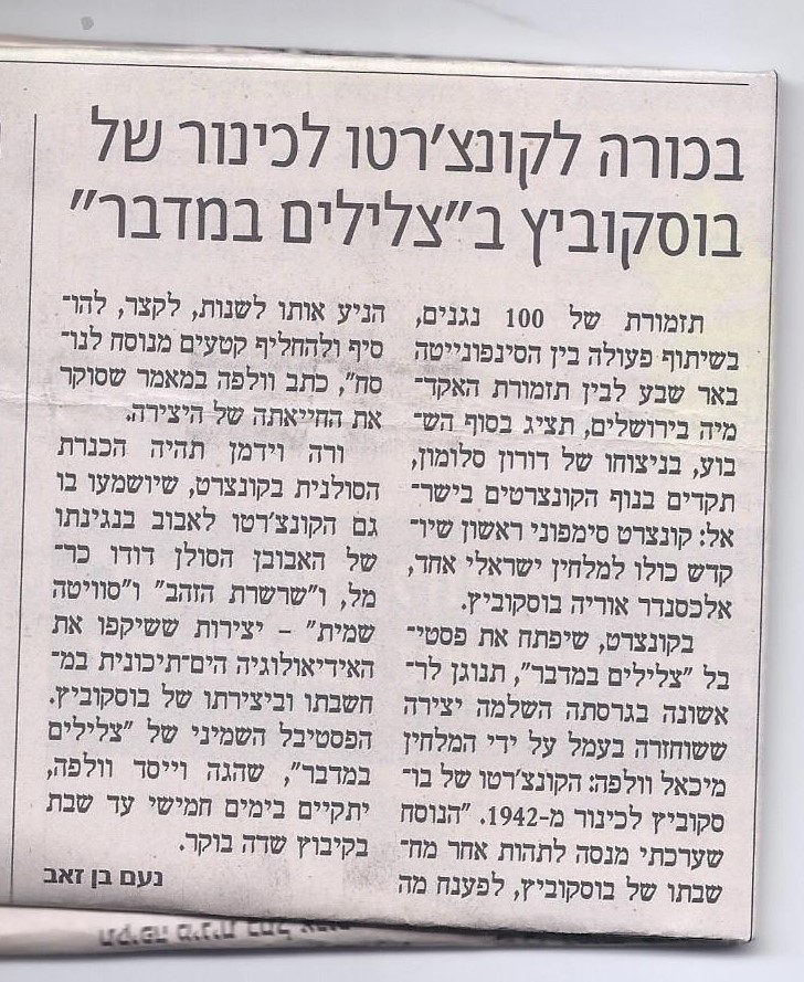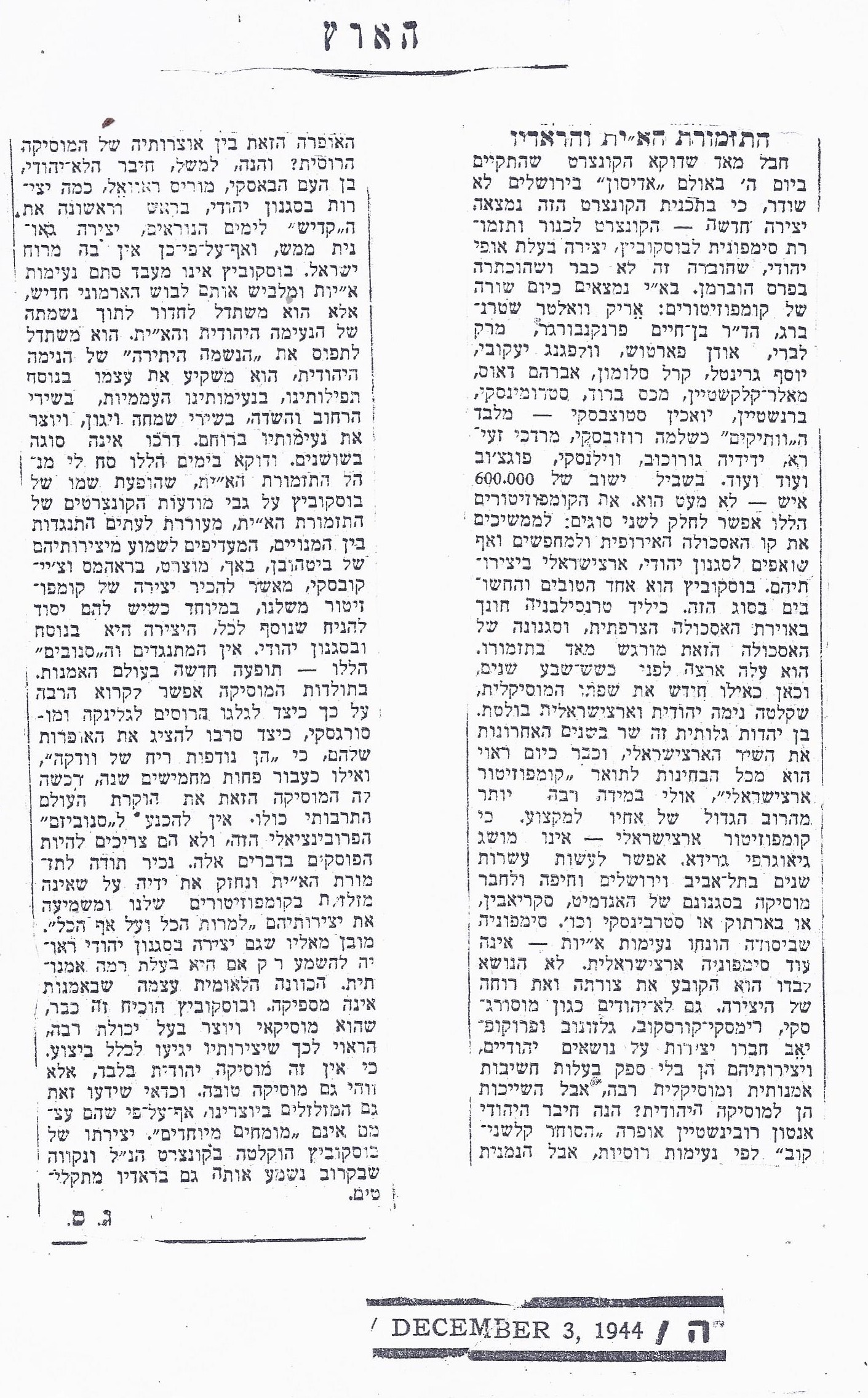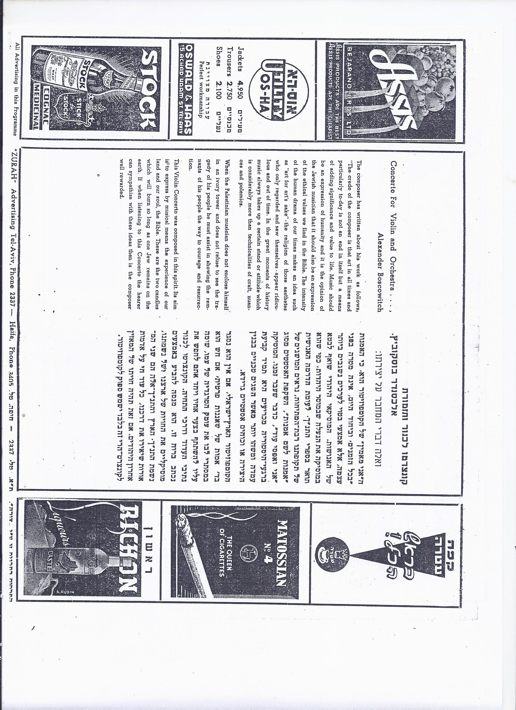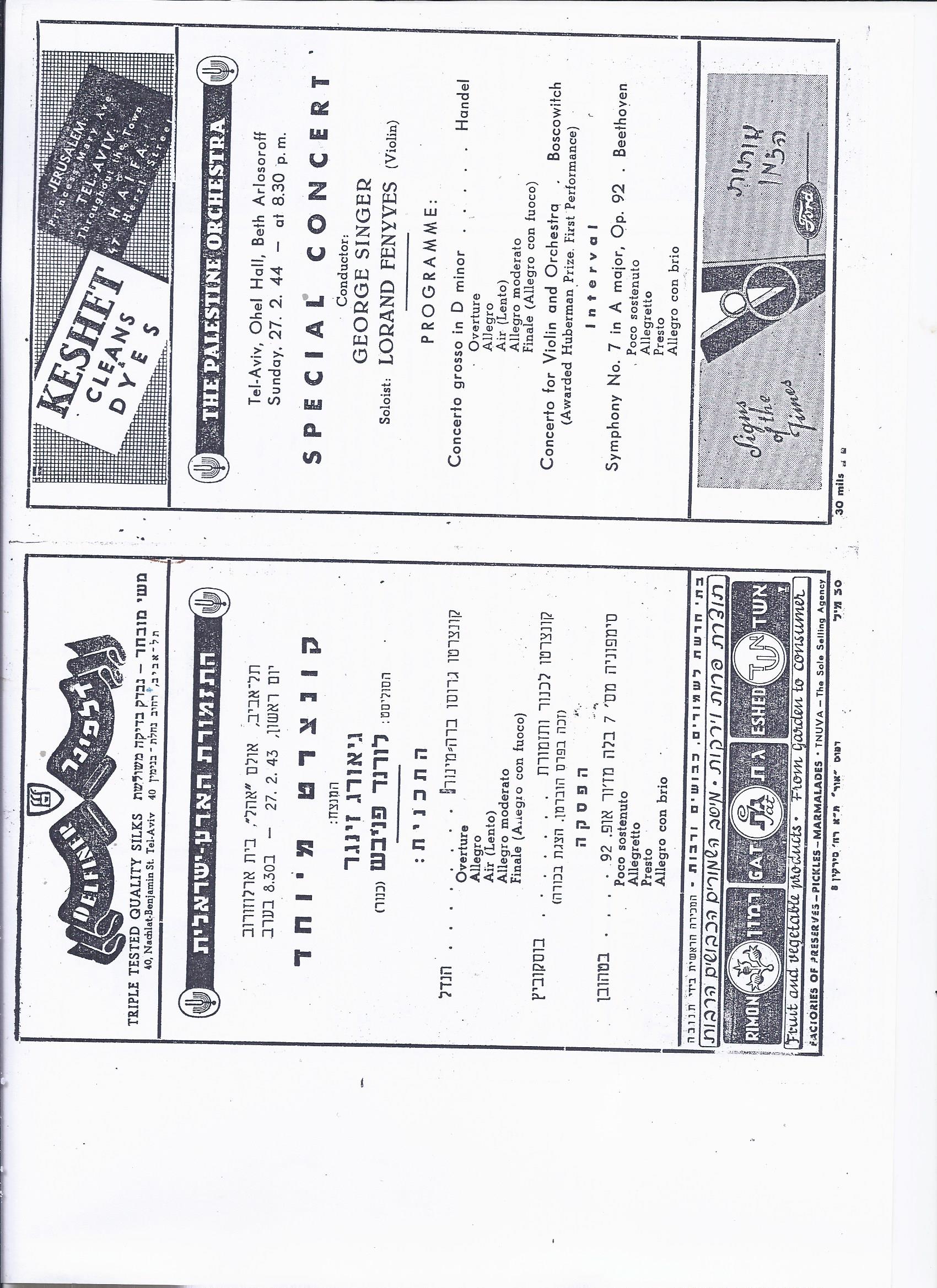 1943/4 – The first performance of the Oboe Concerto was by Bram Blez and the Palestine Symph. Orch. – the later IPO.