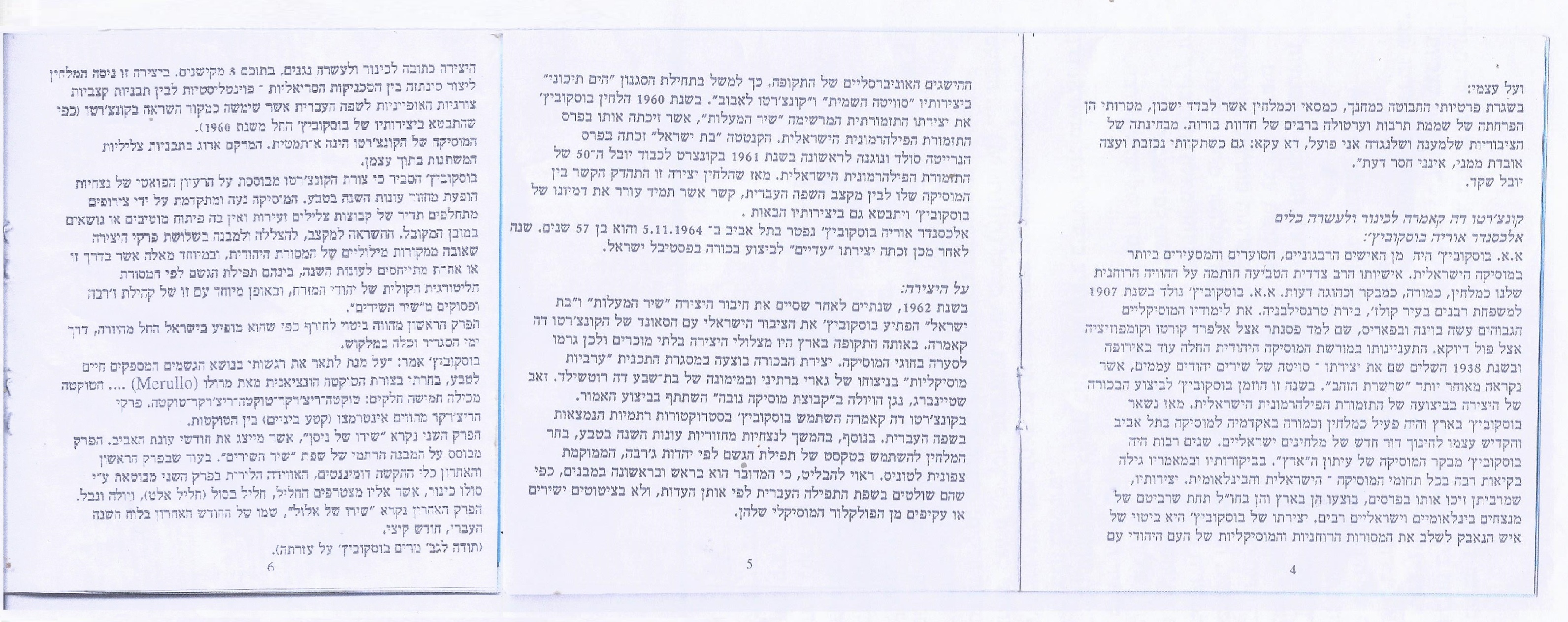 Comissioned by the Israeli Composers’ Fund, Founded by Recha Freier