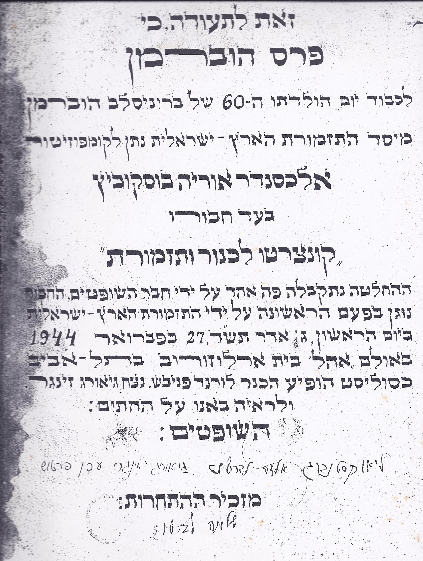 1942 – Palestine Symphony Orchestra (IPO) Huberman Prize