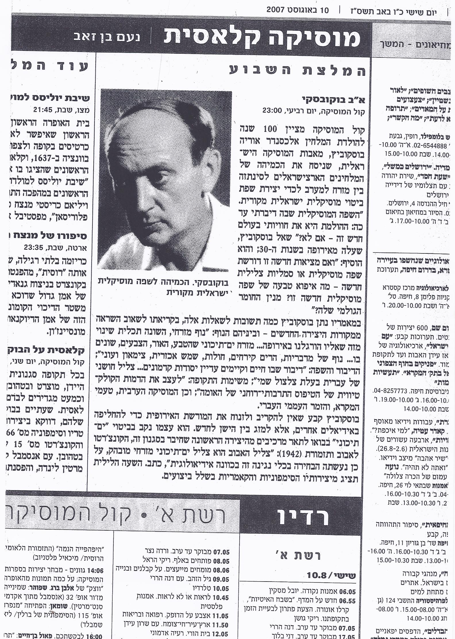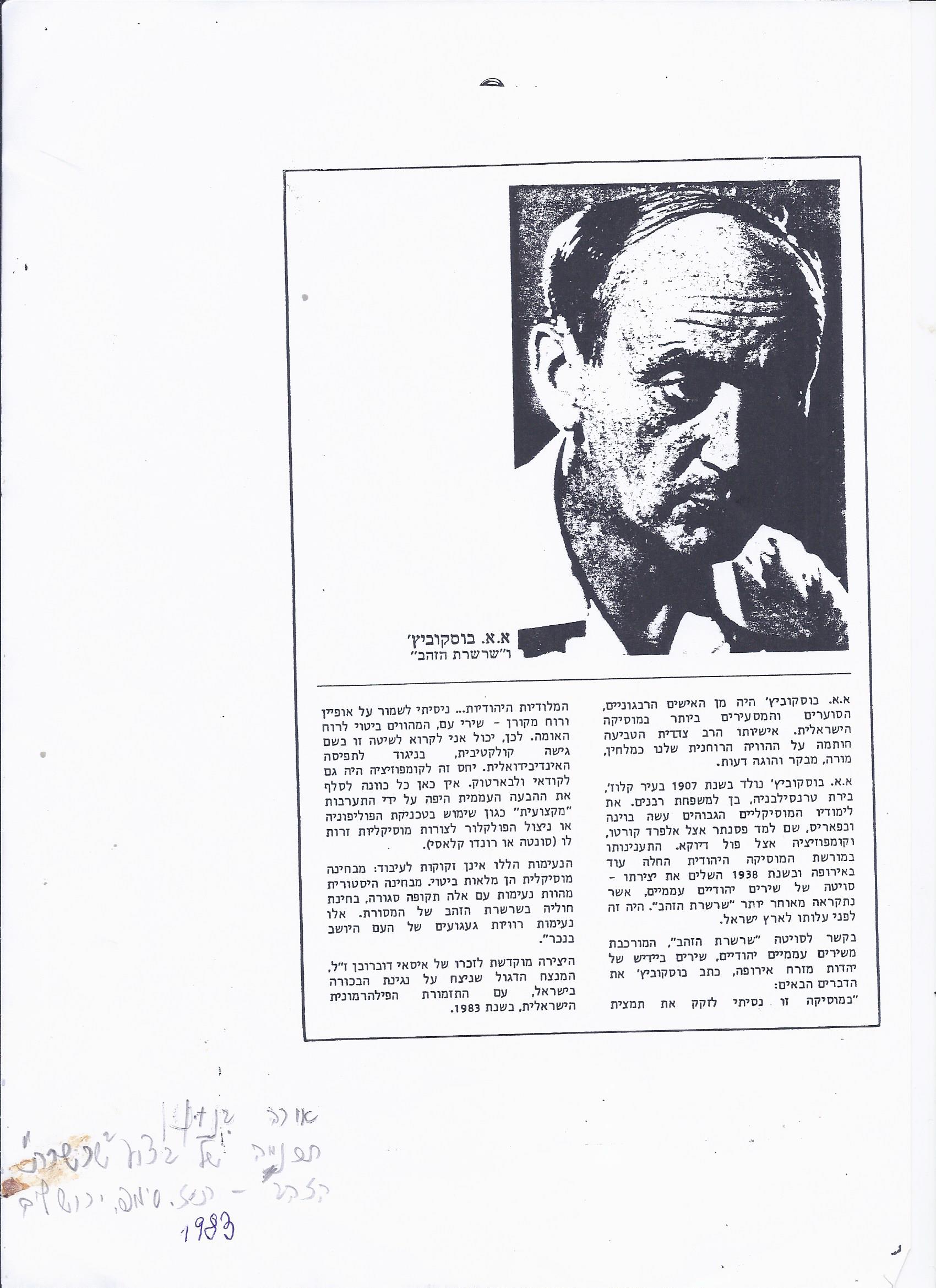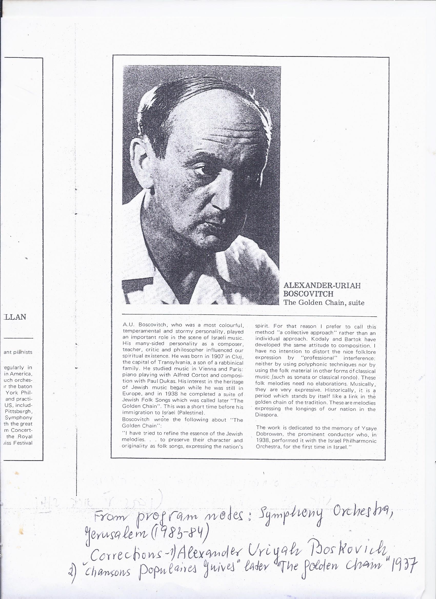 Boskovich, Miriam. “Alexander Uriyah Boskovich – from The Golden Chain to Semitic Suite: 1) Piano Pieces for Youth; 2) Semitic Suite”. A Guide to the Performance of Israeli Piano Works, ed. Miriam Boskovich and Yona Rosenthal- Bogorov (Tel Aviv: The Methodical Centre for Music, 1987), pp. 39-79. (HE)