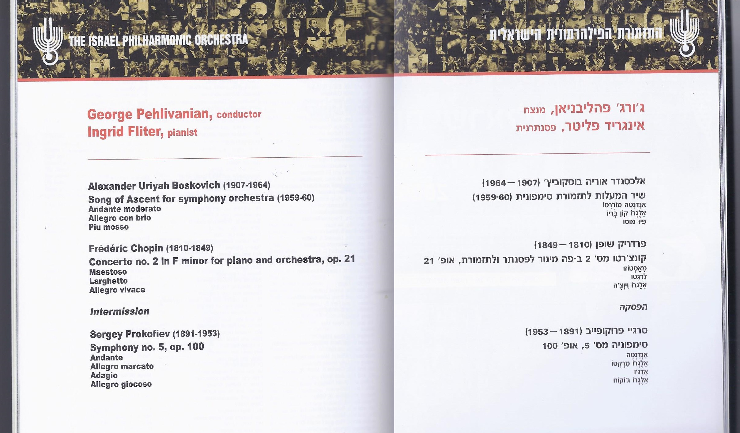 1938 – WP: PO (later IPO), Issay Dobrowen – cond. Haifa, 2/3.3.1938;