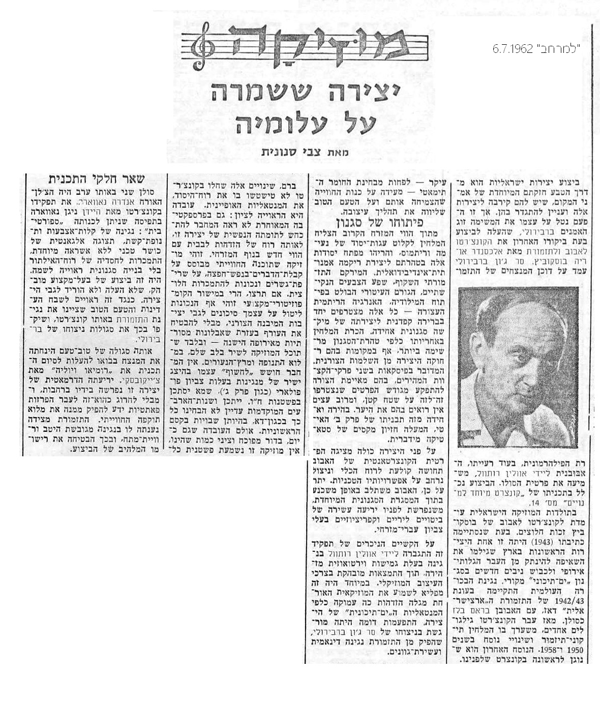 1961 – WP: IPO, Gary Bertini – cond. Tel Aviv, 6/25/26/28/31.1.1961;