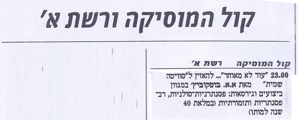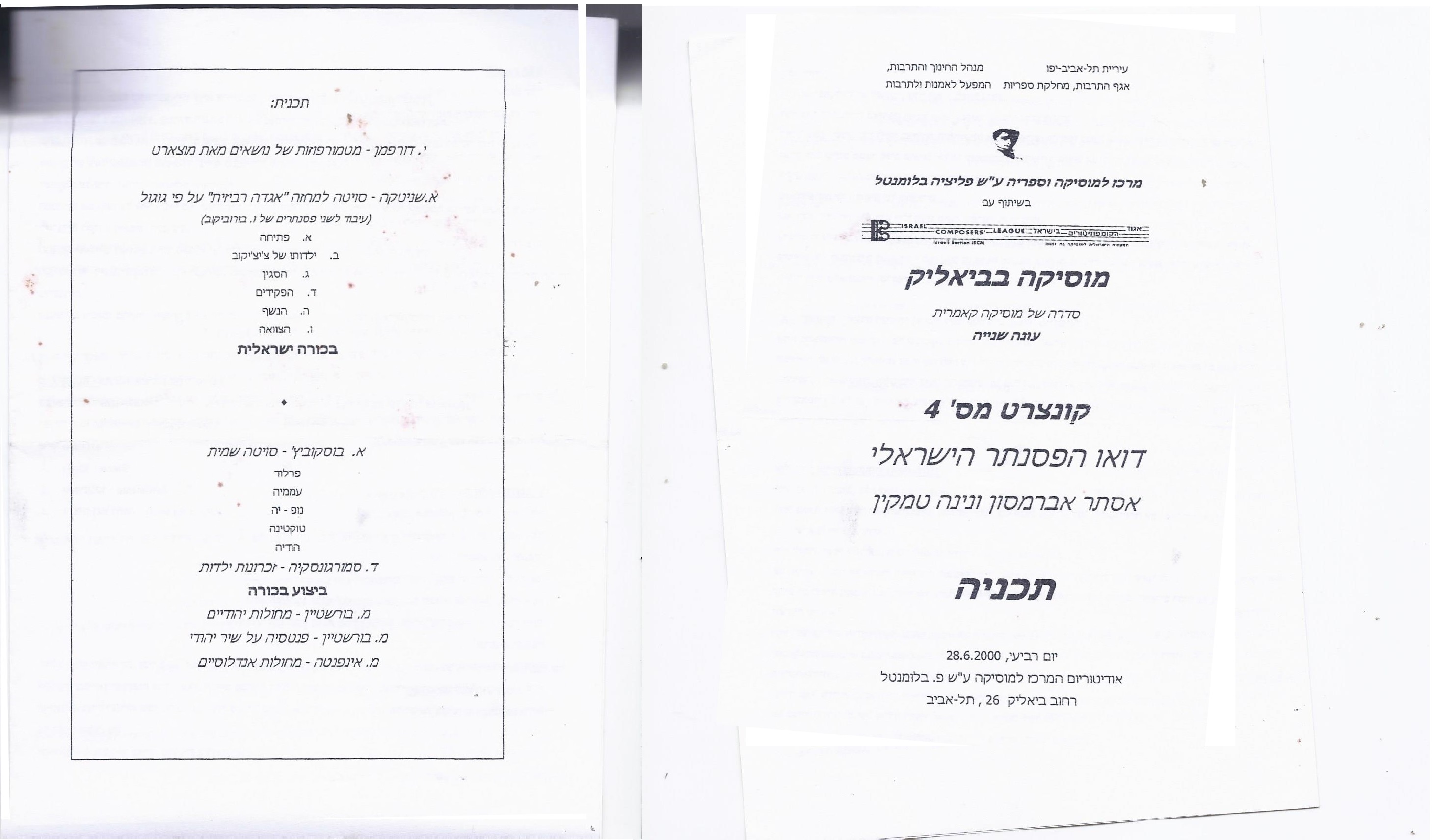 Commissioned by the Ramat Gan Chamber Orchestra, cond. Michael Taube