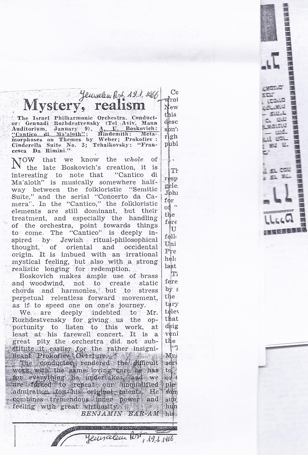 1966 – IPO. Gennadi Rozhdestvensky – cond. Haifa, 5.1.1966; Tel Aviv, 9.1.1966.